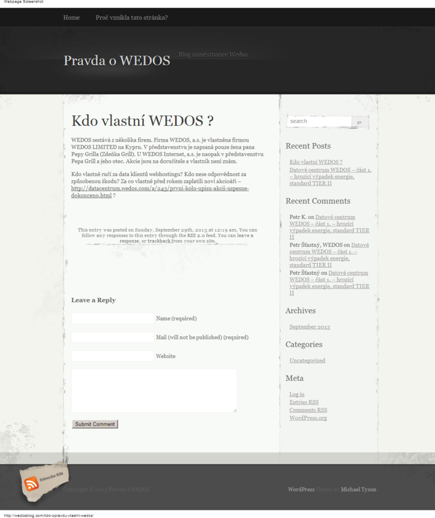 Yesterday we introduced you to our alleged employee who decided to publish the alleged (un)truth about WEDOS. This person was not lazy and today published another article questioning who really owns WEDOS.